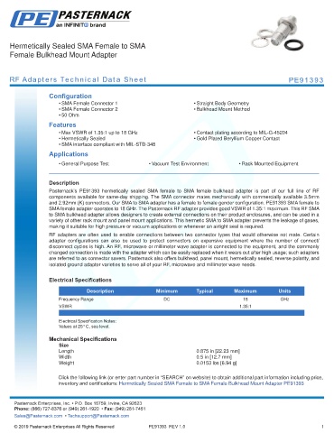 RF Adapters Technical Data Sheet PE91393