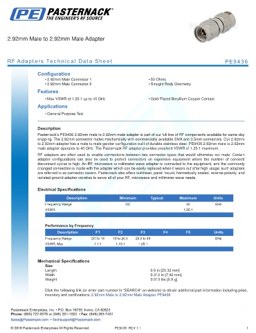 inventory and certifications: 2.92mm Male to 2.92mm Male Adapter PE9436