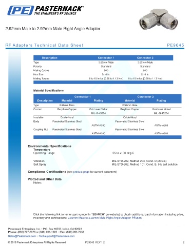 inventory and certifications: 2.92mm Male to 2.92mm Male Right Angle Adapter PE9645