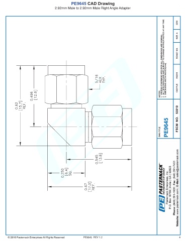 PE9645 CAD Drawing 2.92mm Male to 2.92mm Male Right Angle Adapter PE9645 REV 1.2 4