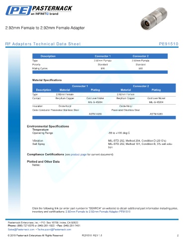 inventory and certifications: 2.92mm Female to 2.92mm Female Adapter PE91510