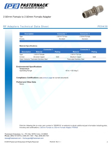 inventory and certifications: 2.92mm Female to 2.92mm Female Adapter PE9438