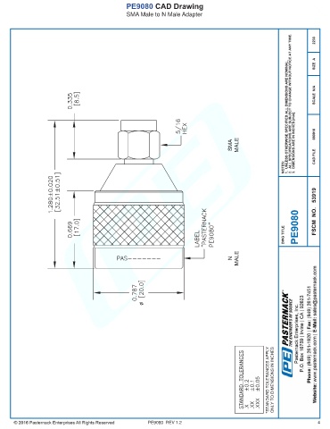 PE9080 CAD Drawing SMA Male to N Male Adapter PE9080 REV 1.2 4