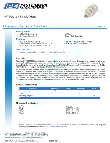 RF Adapters Technical Data Sheet PE9082