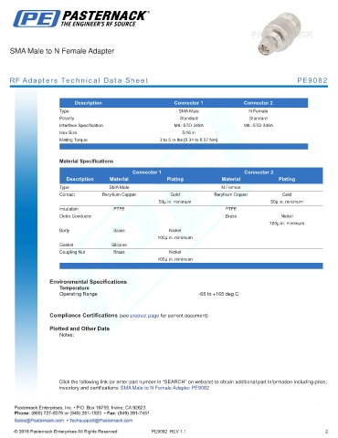 RF Adapters Technical Data Sheet PE9082
