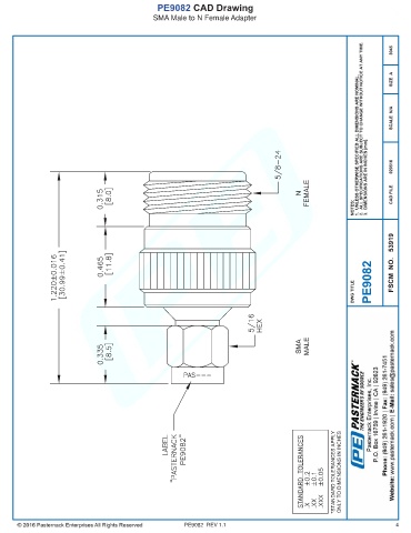 PE9082 CAD Drawing SMA Male to N Female Adapter PE9082 REV 1.1 4