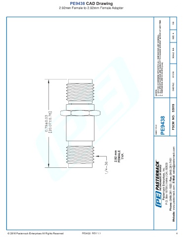 PE9438 CAD Drawing 2.92mm Female to 2.92mm Female Adapter PE9438 REV 1.1 4