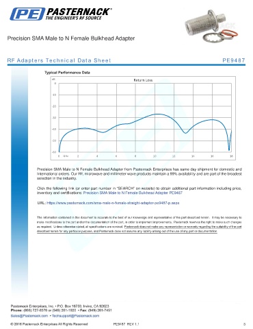 inventory and certifications: Precision SMA Male to N Female Bulkhead Adapter PE9487