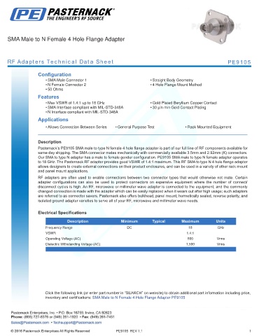 RF Adapters Technical Data Sheet PE9105