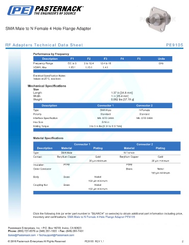 RF Adapters Technical Data Sheet PE9105