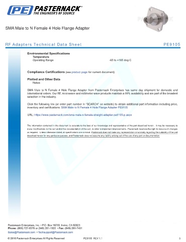 inventory and certifications: SMA Male to N Female 4 Hole Flange Adapter PE9105