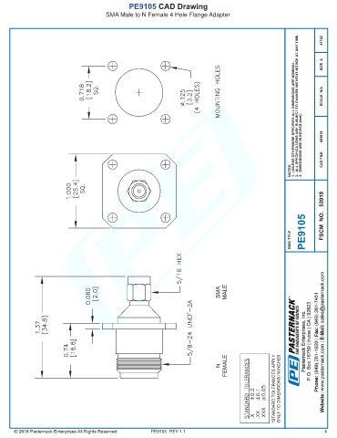 PE9105 CAD Drawing SMA Male to N Female 4 Hole Flange Adapter PE9105 REV 1.1 4