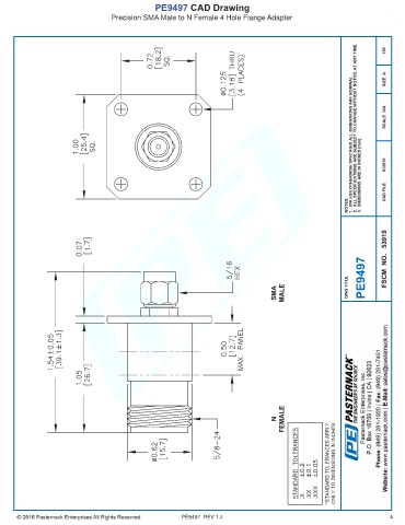 PE9497 CAD Drawing Precision SMA Male to N Female 4 Hole Flange Adapter PE9497 REV 1.4 4