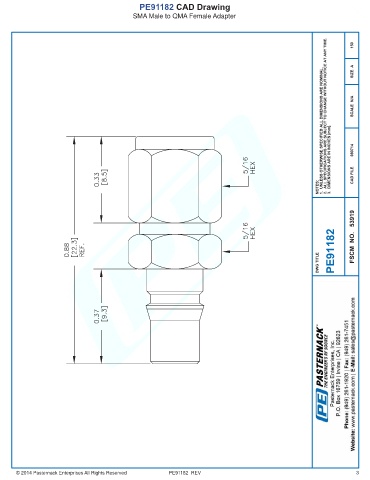 PE91182 CAD Drawing SMA Male to QMA Female Adapter © 2014 Pasternack Enterprises All Rights Reserved PE91182 REV 3