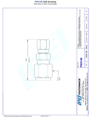 PE9148 CAD Drawing SMA Male to SMC Plug Adapter PE9148 REV 1.1 4