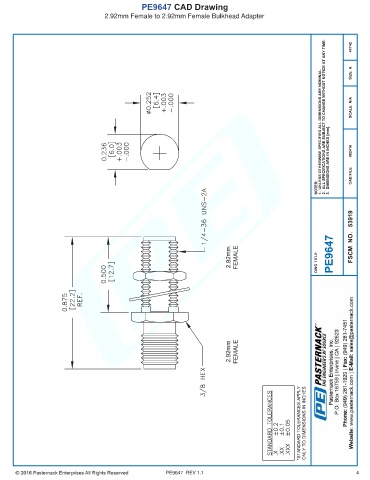 PE9647 CAD Drawing 2.92mm Female to 2.92mm Female Bulkhead Adapter PE9647 REV 1.1 4
