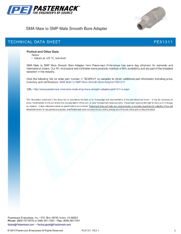 inventory and certifications: SMA Male to SMP Male Smooth Bore Adapter PE91311