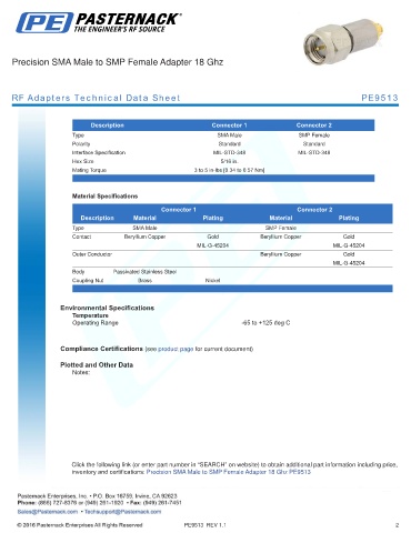 inventory and certifications: Precision SMA Male to SMP Female Adapter 18 Ghz PE9513
