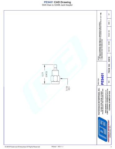 PE9401 CAD Drawing SMA Male to SSMB Jack Adapter PE9401 REV 1.1 3