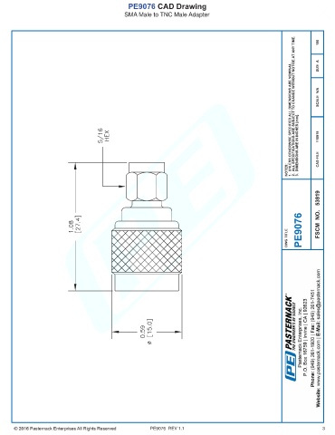 PE9076 CAD Drawing SMA Male to TNC Male Adapter PE9076 REV 1.1 3