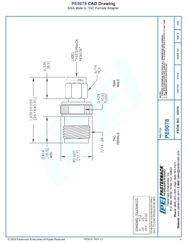 PE9078 CAD Drawing SMA Male to TNC Female Adapter PE9078 REV 1.2 4
