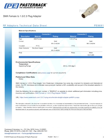 inventory and certifications: SMA Female to 1.0/2.3 Plug Adapter PE9691