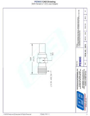PE9693 CAD Drawing SMA Female to 1.0/2.3 Jack Adapter PE9693 REV 1.1 3
