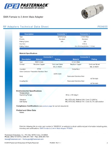 inventory and certifications: SMA Female to 2.4mm Male Adapter PE9655