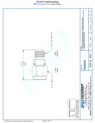 PE9655 CAD Drawing SMA Female to 2.4mm Male Adapter PE9655 REV 1.1 4