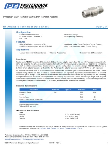 RF Adapters Technical Data Sheet PE91011