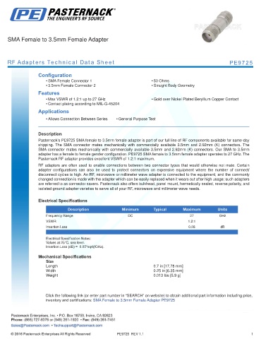 RF Adapters Technical Data Sheet PE9725