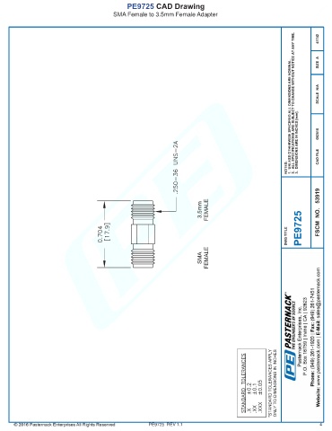 PE9725 CAD Drawing SMA Female to 3.5mm Female Adapter PE9725 REV 1.1 4