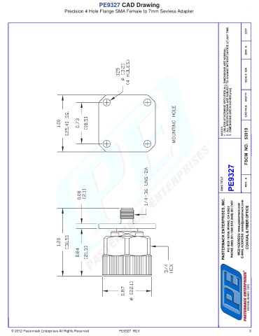 PE9327 CAD Drawing Precision 4 Hole Flange SMA Female to 7mm Sexless Adapter © 2012 Pasternack Enterprises All Rights Reserved PE9327 REV 2