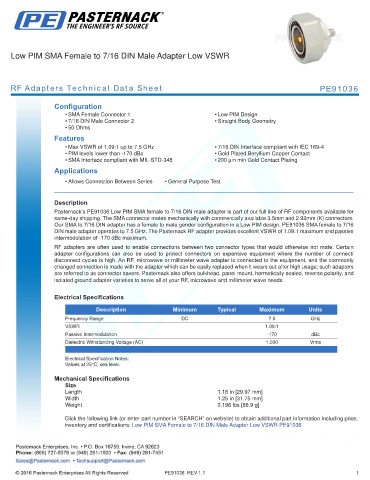 RF Adapters Technical Data Sheet PE91036