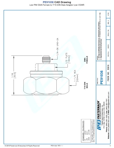 PE91036 CAD Drawing Low PIM SMA Female to 7/16 DIN Male Adapter Low VSWR PE91036 REV 1.1 4