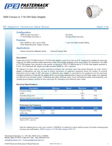 6 GHz. The Pasternack RF adapter provides excellent VSWR of 1.25:1 maximum.