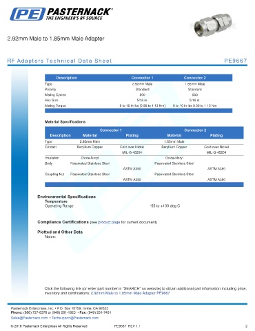 inventory and certifications: 2.92mm Male to 1.85mm Male Adapter PE9667