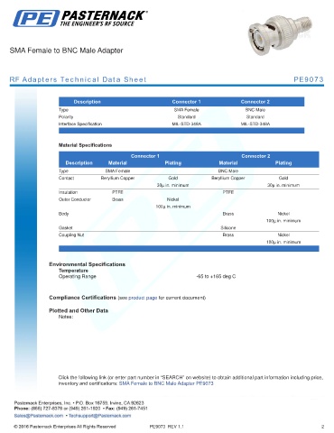 inventory and certifications: SMA Female to BNC Male Adapter PE9073