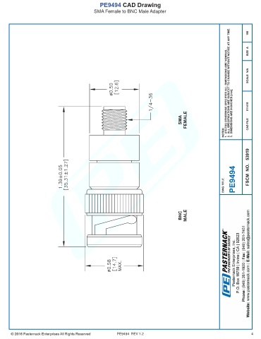 PE9494 CAD Drawing SMA Female to BNC Male Adapter PE9494 REV 1.2 4