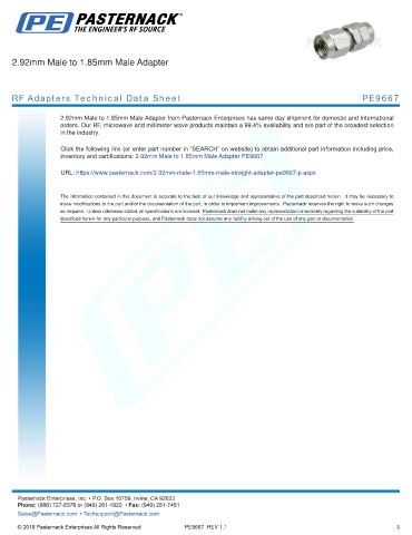 any representation or warranty regarding the suitability of the part described herein for any particular purpose, and Pasternack does not assume any liability arising out of the use of any part or documentation.