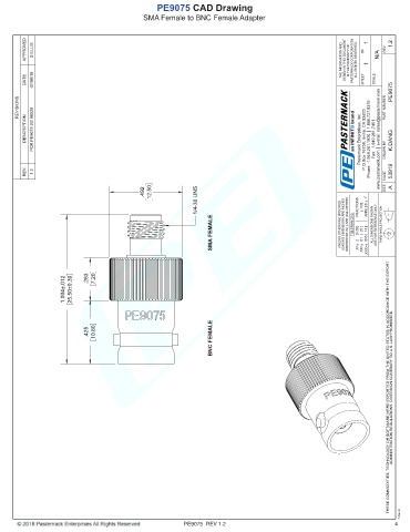 DESCRIPTION PCR PE9075 20190529 Pasternack Enterprises, Inc. P.O.Box 16759, Irvine, CA 92623. Phone: 1.949.261.1920 │ 1.866.727.8376 Fax: 1.949.261.7451 www.pasternack.com │ e-mail: sales@pasternack.com DRAWN BY K.DANG