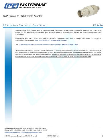 inventory and certifications: SMA Female to BNC Female Adapter PE9496