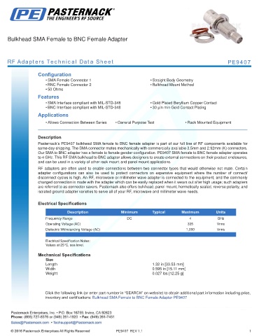 RF Adapters Technical Data Sheet PE9407