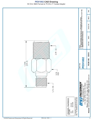 50 Ohm SMA Female to 75 Ohm F Female Adapter