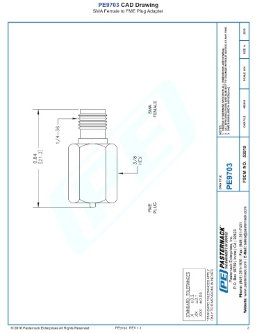PE9703 CAD Drawing SMA Female to FME Plug Adapter PE9703 REV 1.1 3