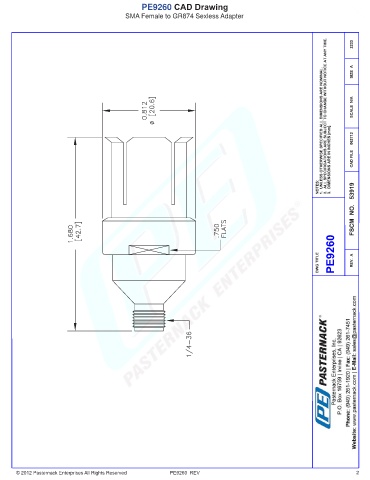 PE9260 CAD Drawing SMA Female to GR874 Sexless Adapter © 2012 Pasternack Enterprises All Rights Reserved PE9260 REV 2