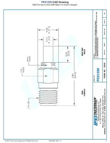 PE91299 CAD Drawing SMA Female to Mini SMP Male Full Detent Adapter © 2014 Pasternack Enterprises All Rights Reserved PE91299 REV 1.0 3
