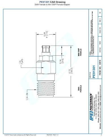 PE91301 CAD Drawing SMA Female to Mini SMP Female Adapter © 2014 Pasternack Enterprises All Rights Reserved PE91301 REV 1.0 3