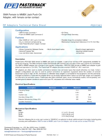 plated and operates to 12.4 GHz. The Pasternack RF adapter provides excellent VSWR of 1.08:1 maximum.