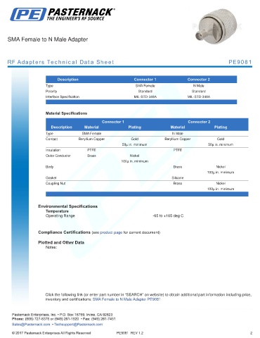 RF Adapters Technical Data Sheet PE9081